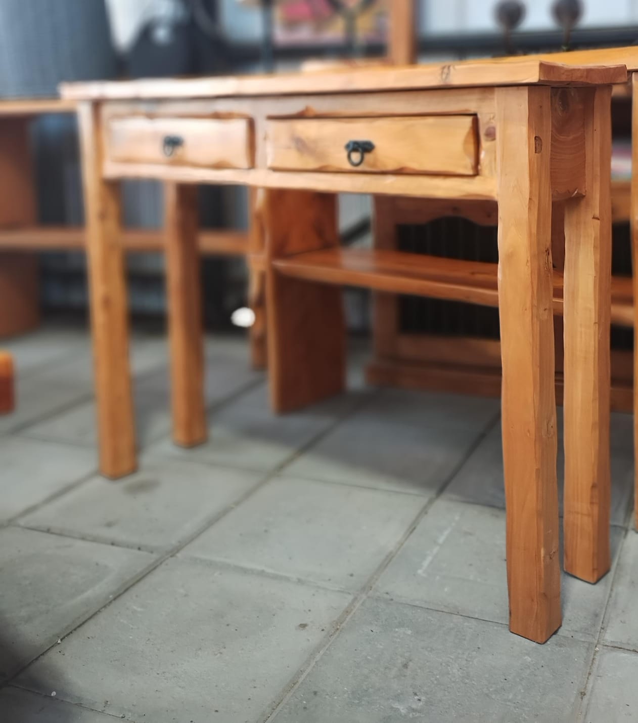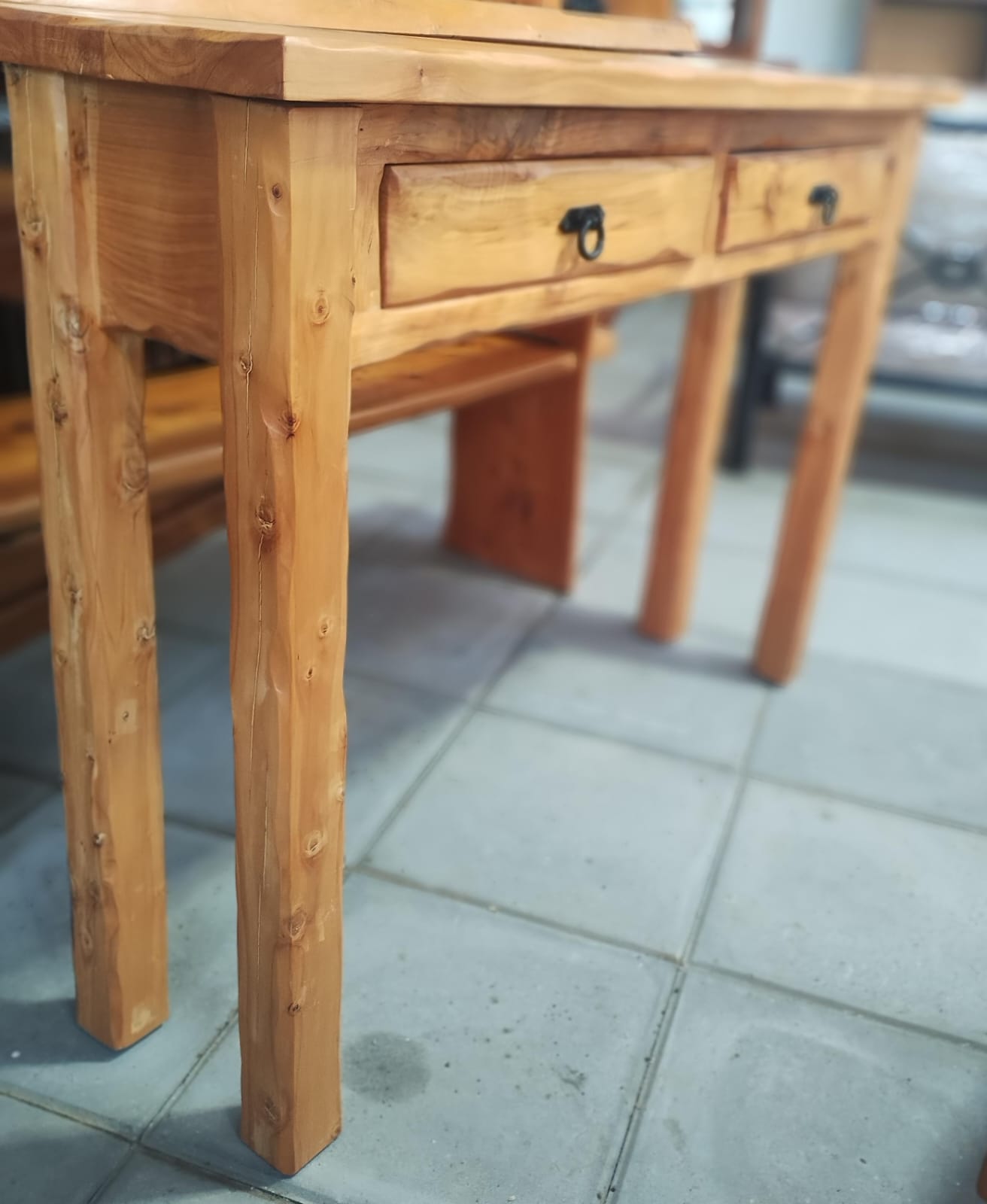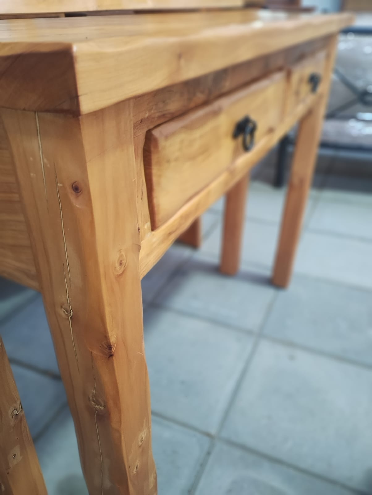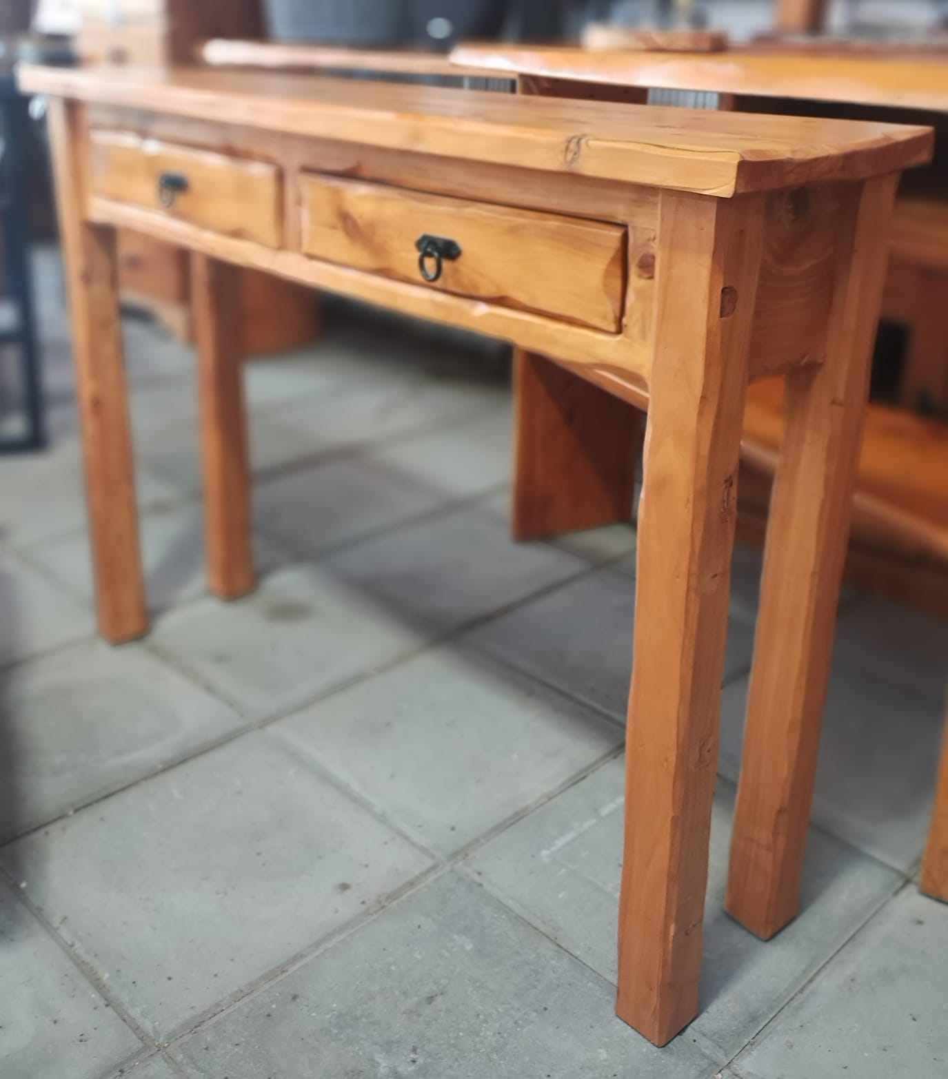 Diseño rústico con 2 cajones útiles y espaciosos, ideales para guardar lo que necesites con estilo.