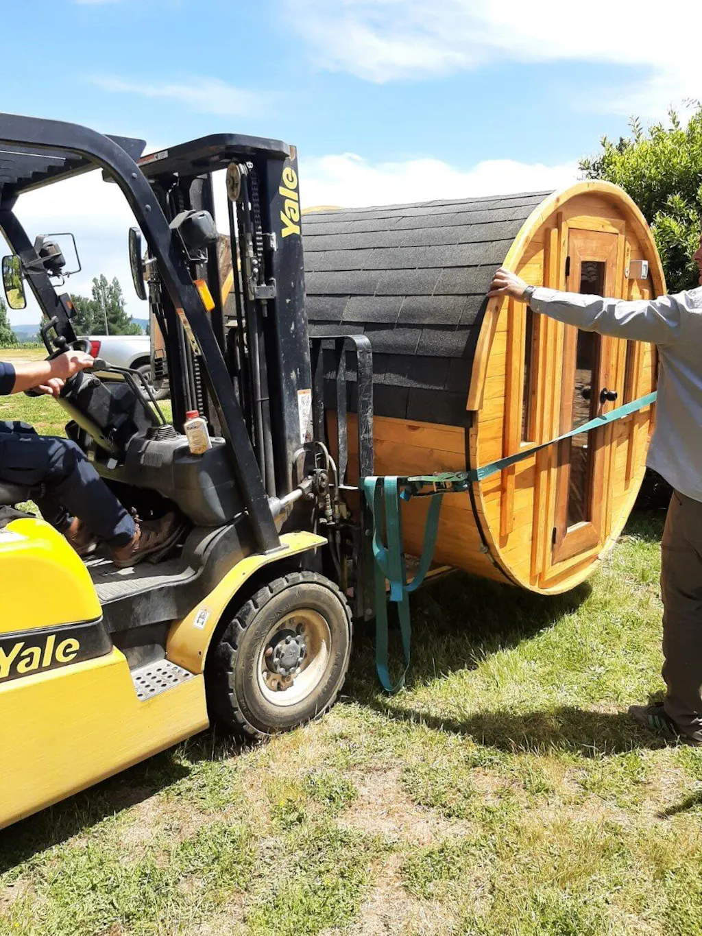 Para la recepción del sauna, se requiere la asistencia de al menos dos personas, con el fin de facilitar una descarga e instalación adecuada.
